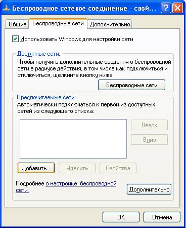 3. В окне «Беспроводное сетевое соединение – свойства». Вкладка «Беспроводные сети».