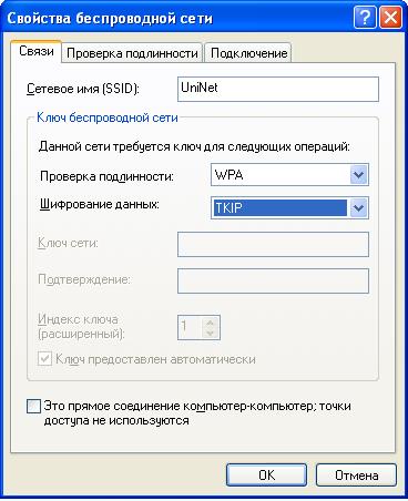 При подключении к беспроводной сети «UniNet» с использованием других операционных систем (Linux, Mac, Symbian, Windows Mobile и т.д.), а также при использовании нестандартного клиентского ПО для подключения к беспроводной сети используйте следующие параметры: