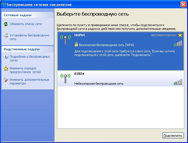 2. В списке сетей выберите «UniNet» и нажмите кнопку «Подключить».