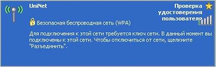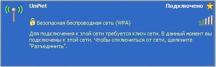 6. Если все настройки были выполнены верно, то рядом с «UniNet» должна появиться надпись «Подключено». В противном случае прочтите раздел «Возможные проблемы».