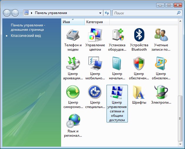 2. Стандартная настройка средствами Windows Vista