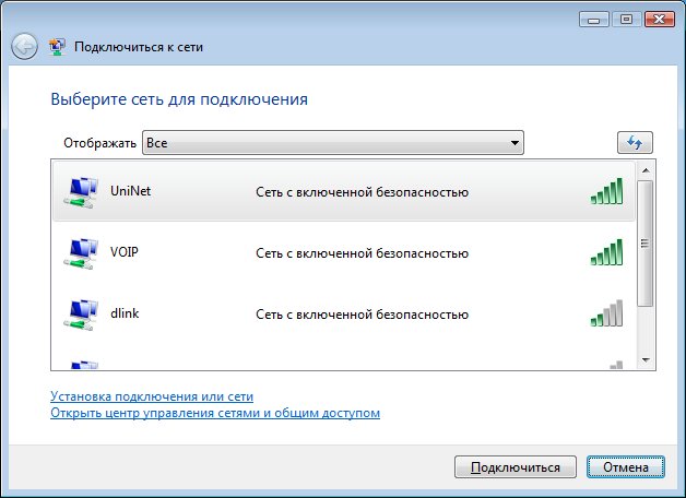 Желательно производить настройку Windows Vista для работы с UniNet, когда Ваше устройство находится в зоне действия этой сети. Чтобы это проверить, нужно выполнить следующие действия: