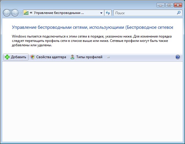 В окне Управление беспроводными сетями нажмите кнопку Добавить.