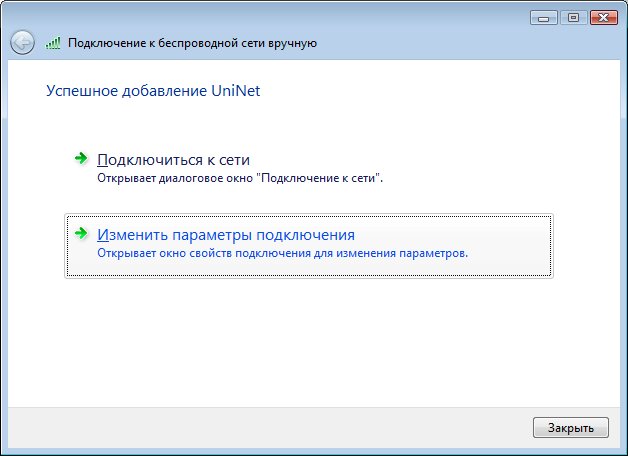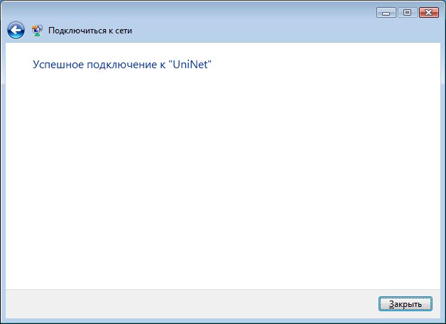В следующем окне должна появиться надпись Успешное подключение к «UniNet». Нажмите Закрыть.