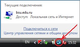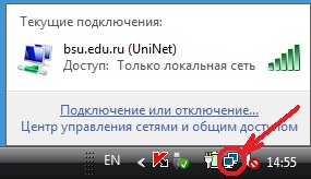 Если всплывающее сообщение (Для подключения к UniNet требуются дополнительные сведения) не появилось, тогда в правой части Панели задач, кликните на значке , а затем кликните в появившемся меню на пункте Подключиться к сети