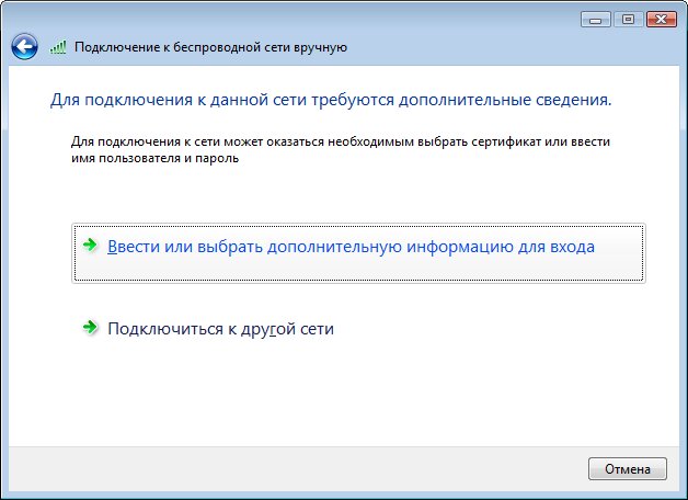 Выберите пункт Ввести или выбрать дополнительную информацию для входа
